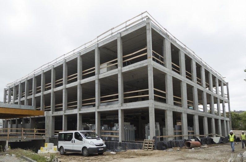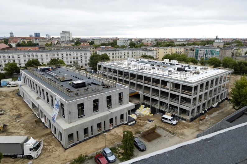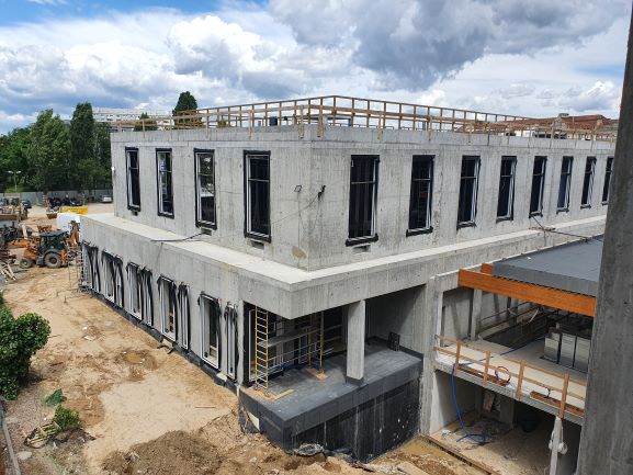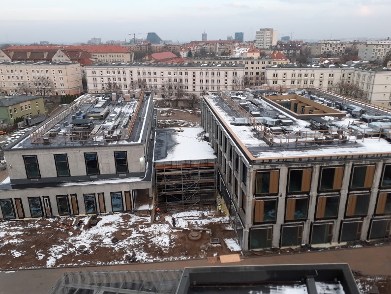 Projekt eines didaktischen und Forschungsgebäudes, verwirklicht unter Mitwirkung der Firmen Schuessler Plan Inżynierzy und Rysy Architekci. Wir waren für die statischen Berechnungen der Haupttragkonstruktion sowie für das Bau- und Ausführungsprojekt eines 3-teiligen Gebäudekomplexes mit didaktischen und Forschungs-funktionen für die Medizinische Universität Posen mit einer Gesamtfläche von ca. 15 000 m² verantwortlich. Eines dieser Gebäude hat die typische monolithische Stahlbetonkonstruktion mit teilweise säulen- und plattenartigem System aus Stahlbetonwänden und Balkenelementen. Wegen der Anforderungen der künftigen Ausstattung wurde in einem Teil der Fläche Verbundstoffbewehrung verwendet. Bei den übrigen zwei Gebäuden handelt es sich um Stahlbetonkonstruktionen in Säulen- und Platten-Anordnung im unterirdischen Teil und als Säulen-Träger-Anordnung mit Spannbetonfertigdecken und Stahlbetonwänden im überirdischen Teil. Die Gebäude sind durch Verbindungsgebäude mit stabiler Stahlbetonkonstruktion aus Spannbetonfertigdecken und Dächern aus Leimholz miteinander verbunden. Die Berechnungen wurden im Programm Sofistik und das BIM-Modell und Zeichnungen im Programm Allplan ausgeführt. Bei der Analyse wurde der Fundamentenumriss hinsichtlich der Erfüllung der TBW-Anforderungen überprüft.
