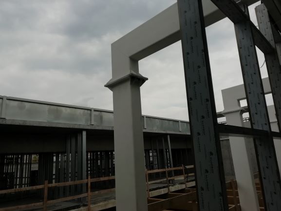 Projekt im Auftrag von Pöyry Poland. Unsere Aufgabe war es, die Ausführungsdokumentation für den Meisterraum und die Rampenbrücke in der Bogenfinish-Halle zu erstellen. Die Konstruktion des Meisterraumes besteht aus leichten Rahmen aus rechteckigen Rohren, umbaut mit Doppelplatten. Der Meisterraumes ist über die stählerne Rampenbrücke erreichbar. Die Rampenbrücken-Konstruktion an der Betonschicht des Etagenfußbodens befestigt. Das Projekt wurde unter Verwendung der Software Robot Structural Analysis und AutoCAD Structural Detailing realisiert.