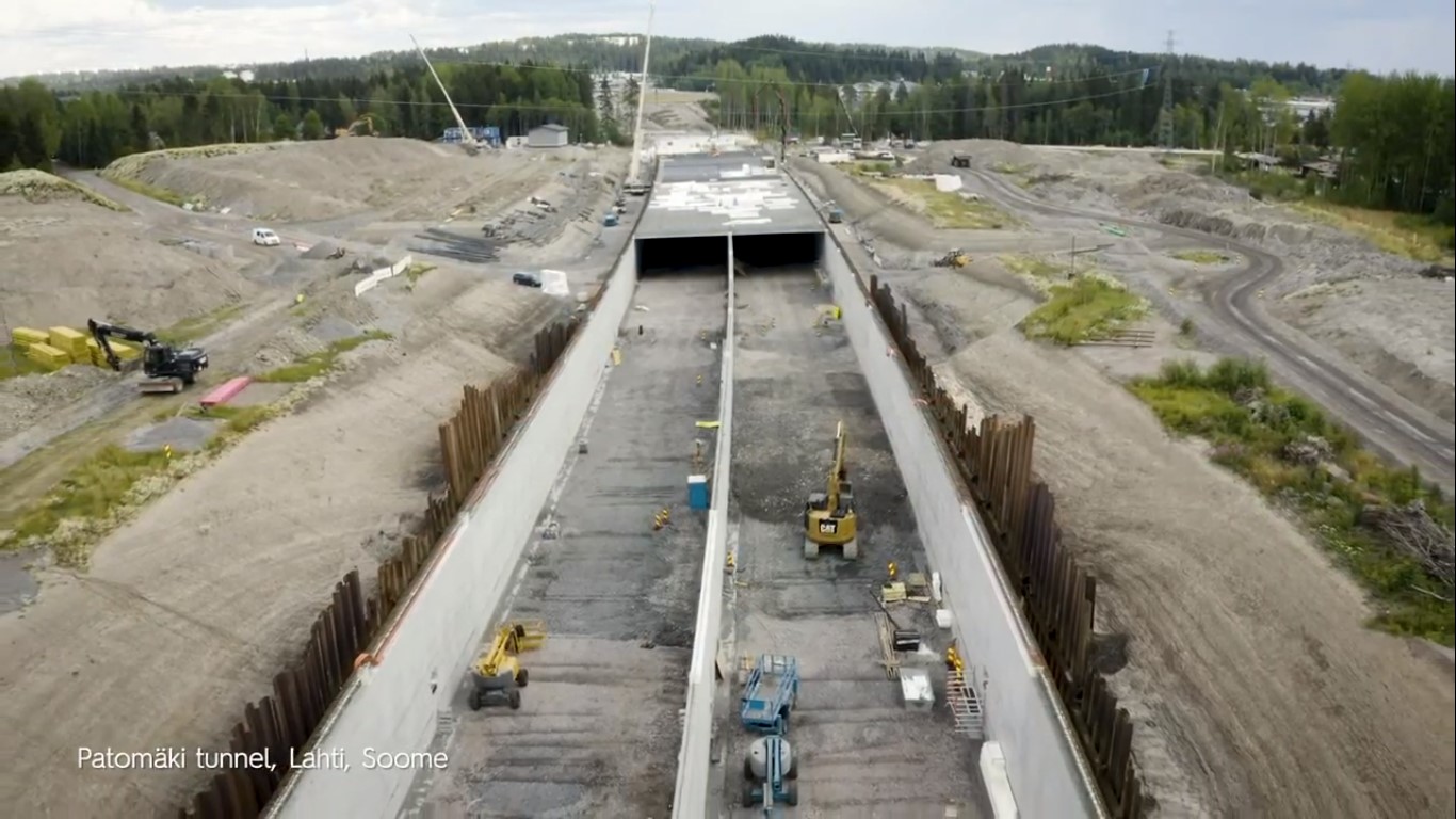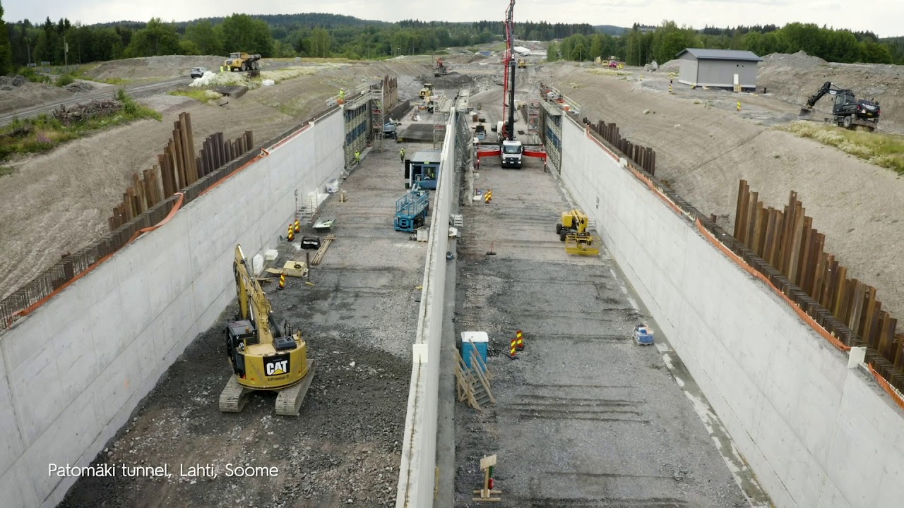 Projekt eines 400 m langen Straßentunnels aus Beton, der einen Teil der Lahti-Umgehungsstraße im Zug der Autobahnstraße V12 darstellt. Der im Tagebau ausgeführte Tunnel stützt teilweise auf eingerammte Betonpfähle. Für den Bedarf des Projekts wurde ein BIM-Modell erstellt. Uns oblag die Erstellung des Ausführungsprojekts für Stahlbetonelemente des Tunnels, die Verteilung der TT-Fertigplatten als verlorene Schalung, die Festlegung der Koordinaten für die Rammpfähle, Verifizierung des Berechnungsmodells und der Berechnungen der Koordinaten für die auf Pfählen gegründete Grundsektion. Es wurden die Programme Sofistik, Tekla Structures und AutoCAD benutzt.