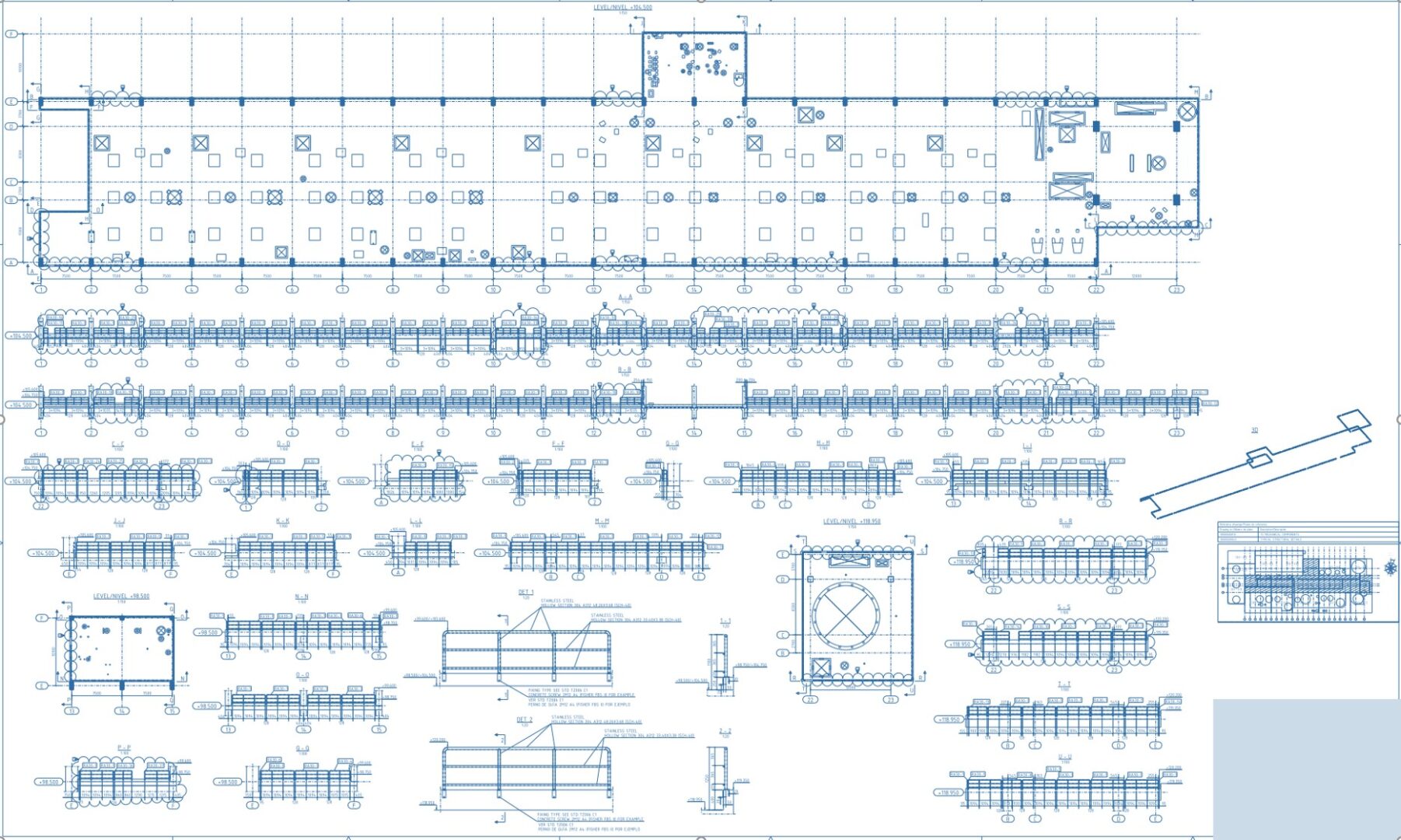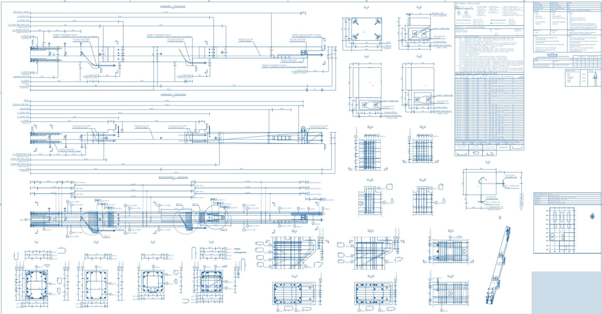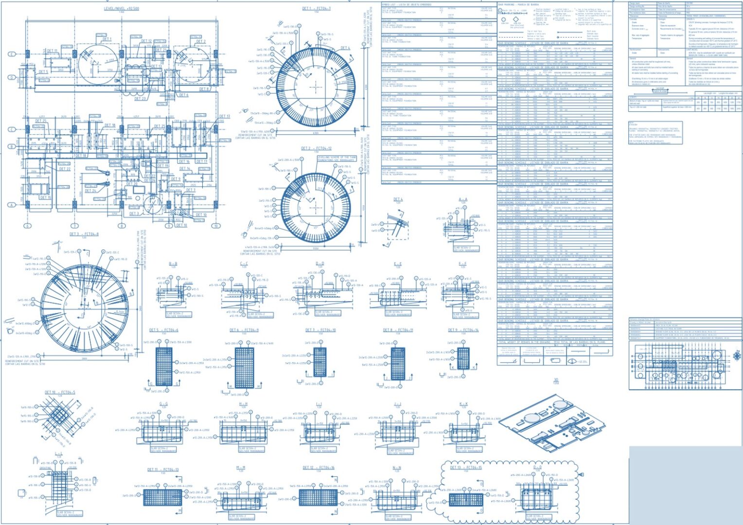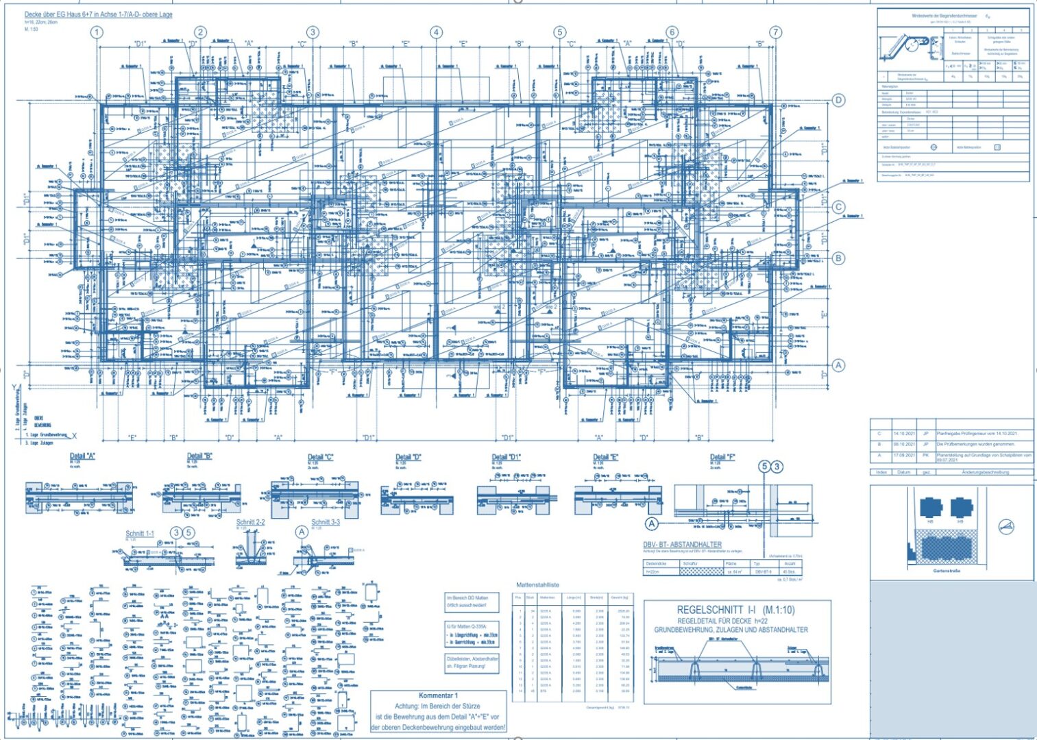 Komplet von Bewehrungszeichnungen für die Wohnsiedlung Bülachguss 2, die aus 4 Mehrfamilienhäuern mit Zweietagen-Tiefgaragen mit einer Fläche von mehr als 5000 m² besteht. Das Projekt wurde komplett im Programm Allplan erstellt.