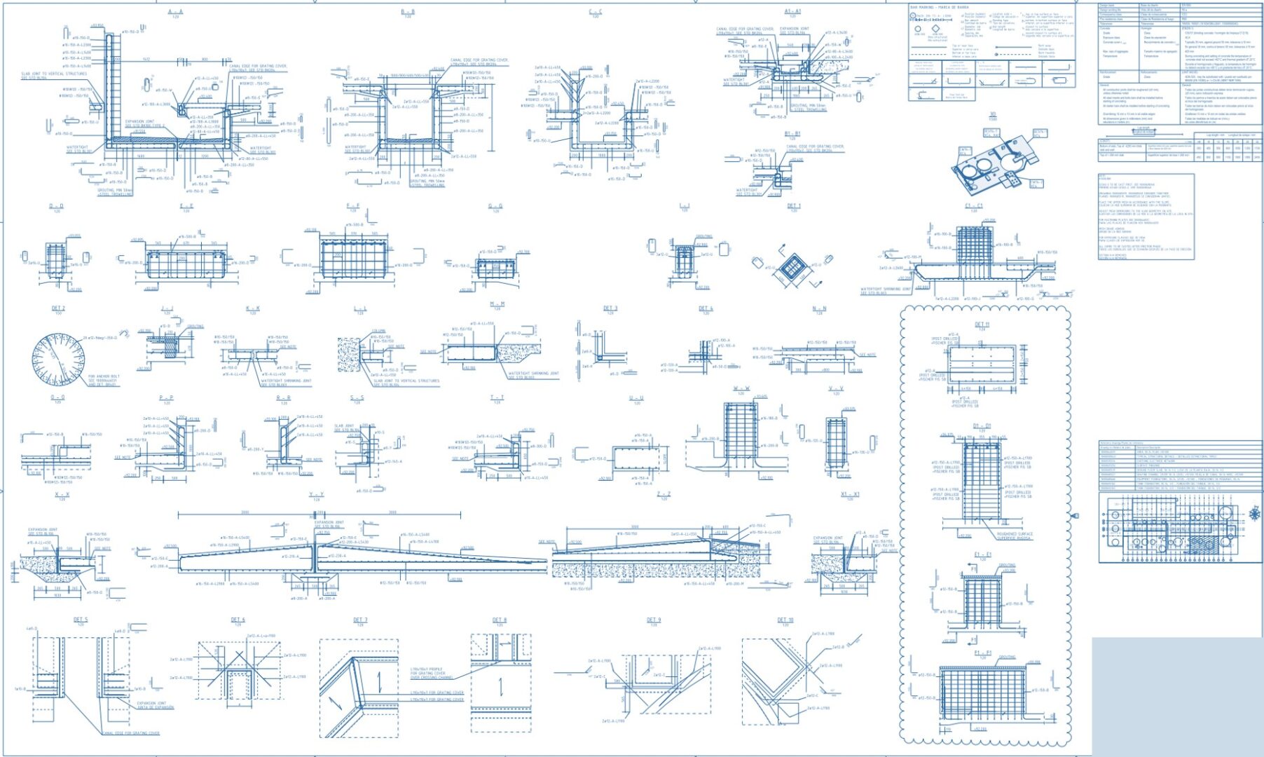 Ausführungsprojekt für eine Eisenbahnbrücke in Deutschland. Das Objekt wurde als offener Stahlbetonrahmen mit einer theoretischen Joch-Spannweite von 12,8 m. Das Projekt umfasste auch die Stützmauern. Unsere Aufgabe war es, Bewehrungszeichnungen für alle Konstruktionselemente der Brücke und der Stützmauern.