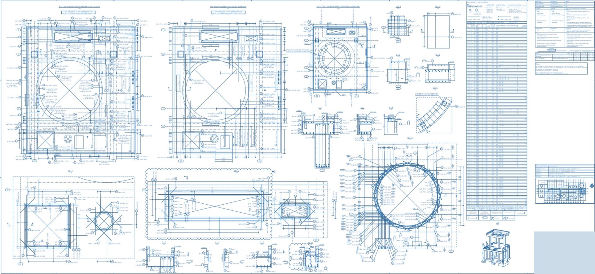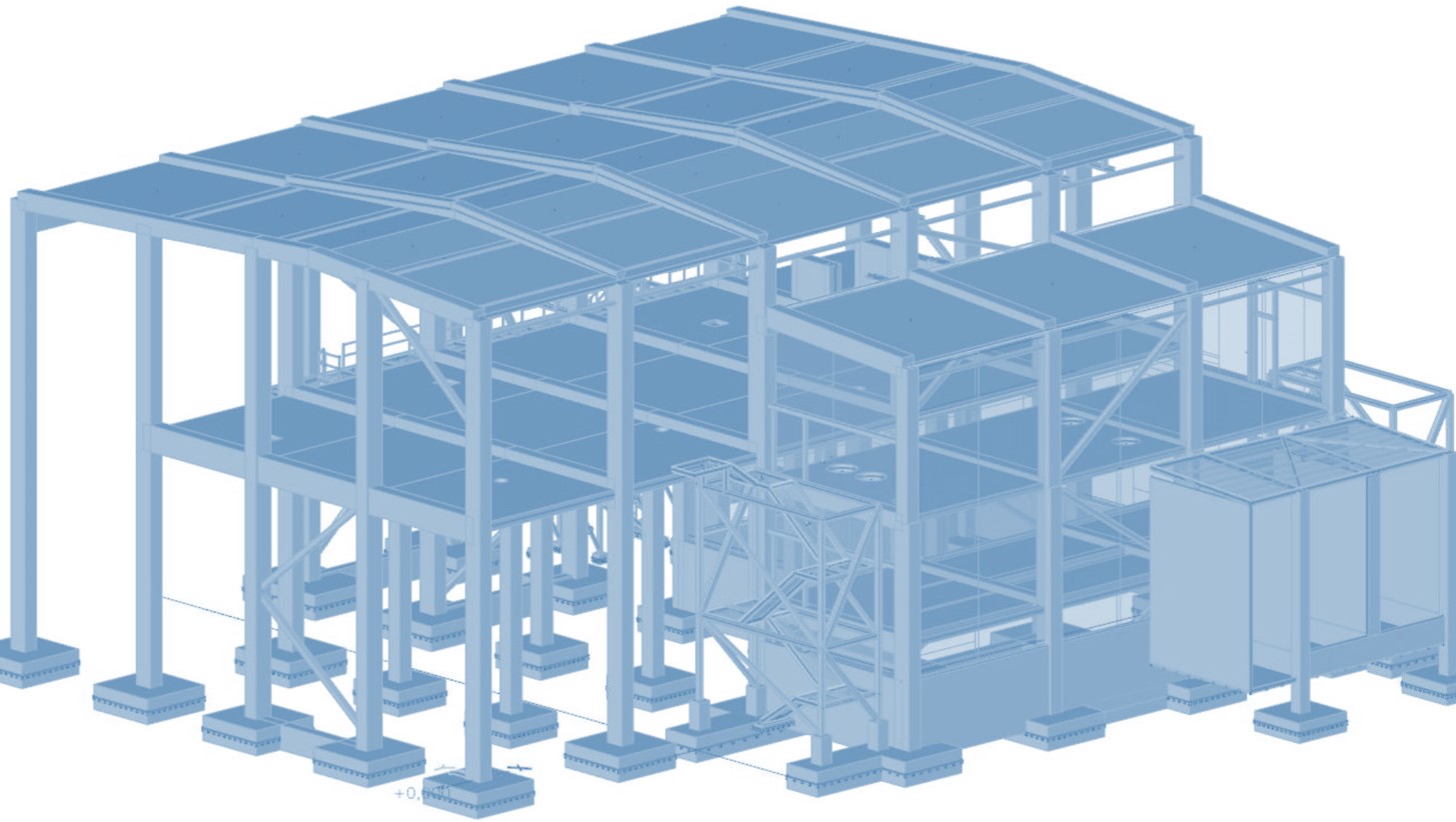 Es wurde ein provisorischer Stützturm aus Stahl entworfen, der bei der Montage des Dachs eines Dieselkraftstoff-Behälters benutzt werden soll. Der 9,2 Meter hohe Turm sollte ein 131 Tonnen schweres Dach mit einem Durchmesser von 43 Metern tragen. Nach der Montage des Behälters und der Unterstützung der Dachkonstruktion wurde der Turm abgebaut. Die Zeichnungen wurden im Programm Tekla Structures erstellt.