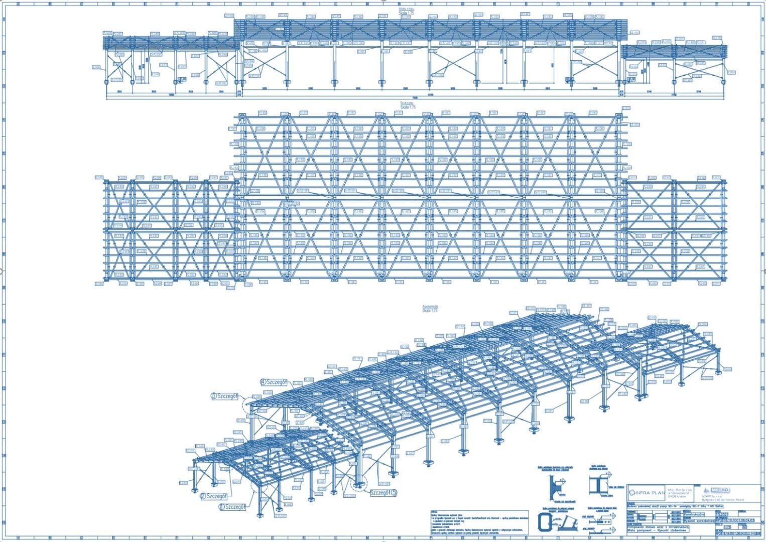 Projekt zum Versehen der bestehenden Papiermaschine MP1 im Werk Arctic Paper in Kostrzyn mit einer Haube. Das Projekt der Stahlkonstruktion wurde mithilfe der Software Tekla erstellt.